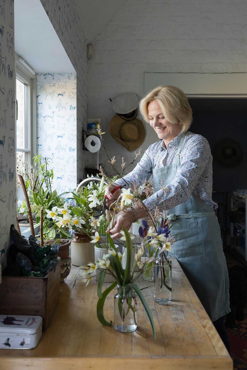 I have a cutting garden here at Well Farm where I grow a huge range of annuals, perennials and unusual flowers which I use to give my designs a true feeling of the English garden. I seek out scented flowers to grow and I have a large selection of roses for cutting and mature shrubs and trees. I am also lucky enough to have access to hedgerows and woodlands where I can forage for foliage, hips, berries, seed heads and bring a sense of the wild and the countryside to my work.